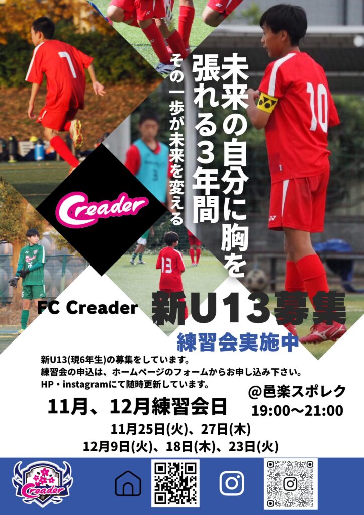 サッカーは上手い下手ではありません。情熱を強く持ち、サッカーと向き合え向上心がある選手を募集しています。そのような選手は是非クレアデールの門を叩いてください。プロ経験がある指導者、全国大会優勝経験がある指導者がみんなを待っています。